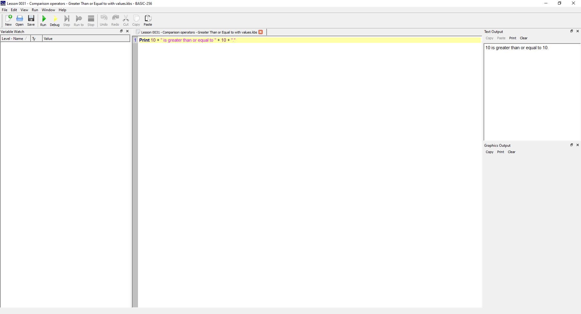 Basic-256 Greater Than or Equal To with values