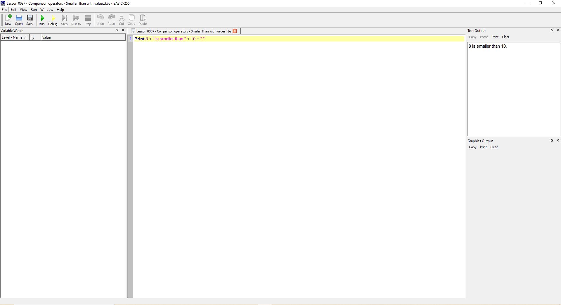 > Basic-256 Smaller Than with values
