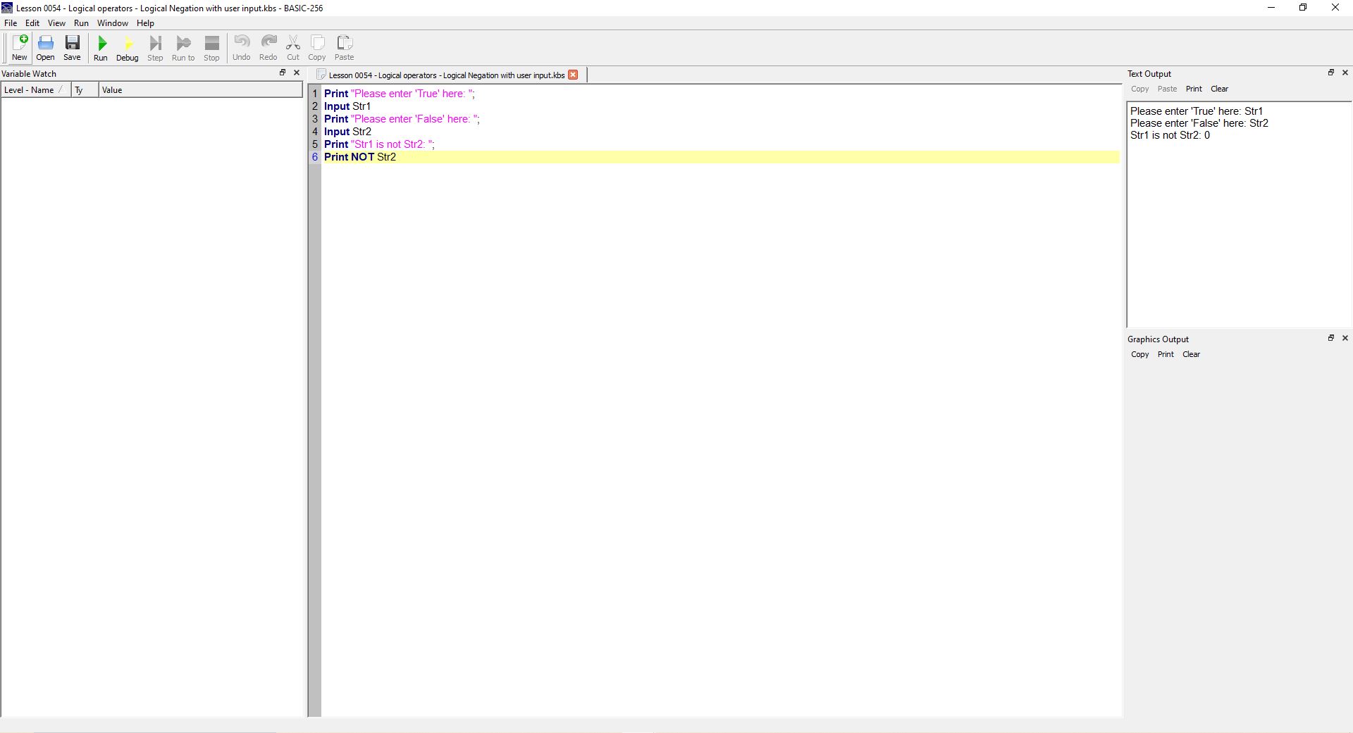 > Basic-256 Logical Negation with user input