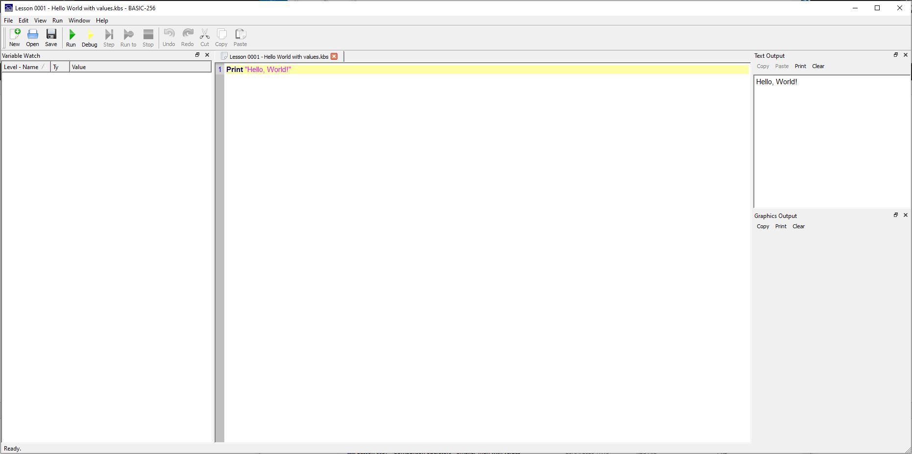 Basic-256 Hello World with values