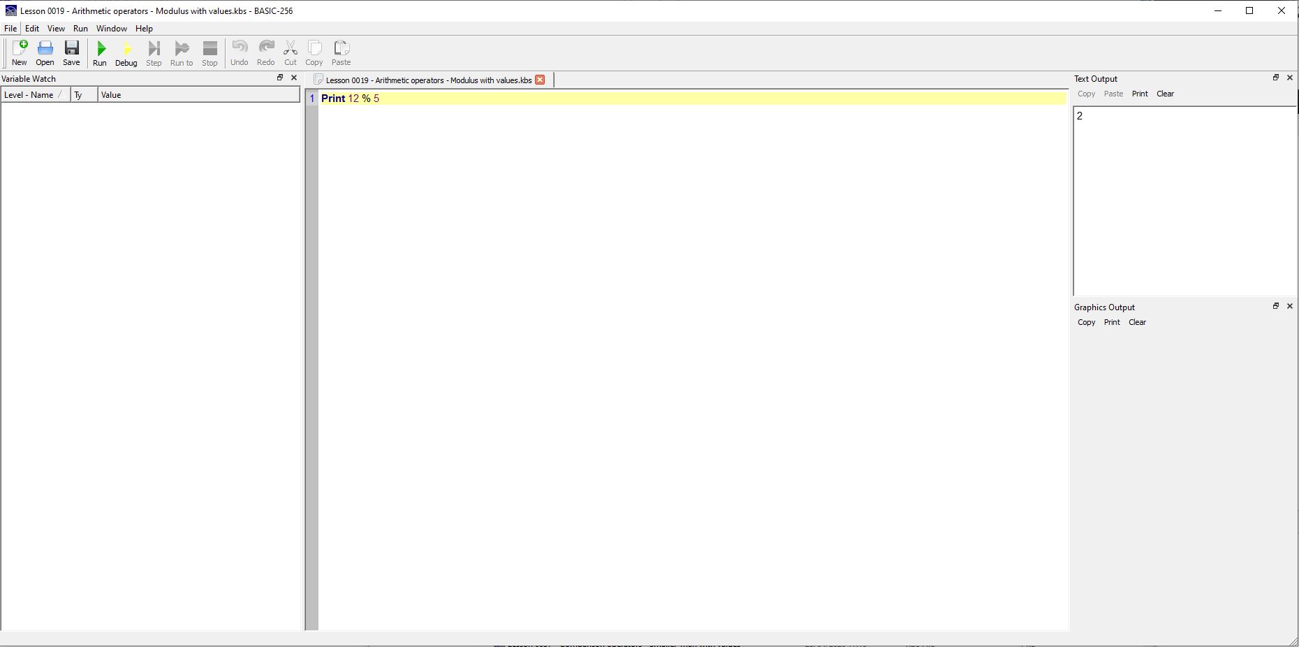 Now we will use modulus to get the remainder of a division as shown on the image below: