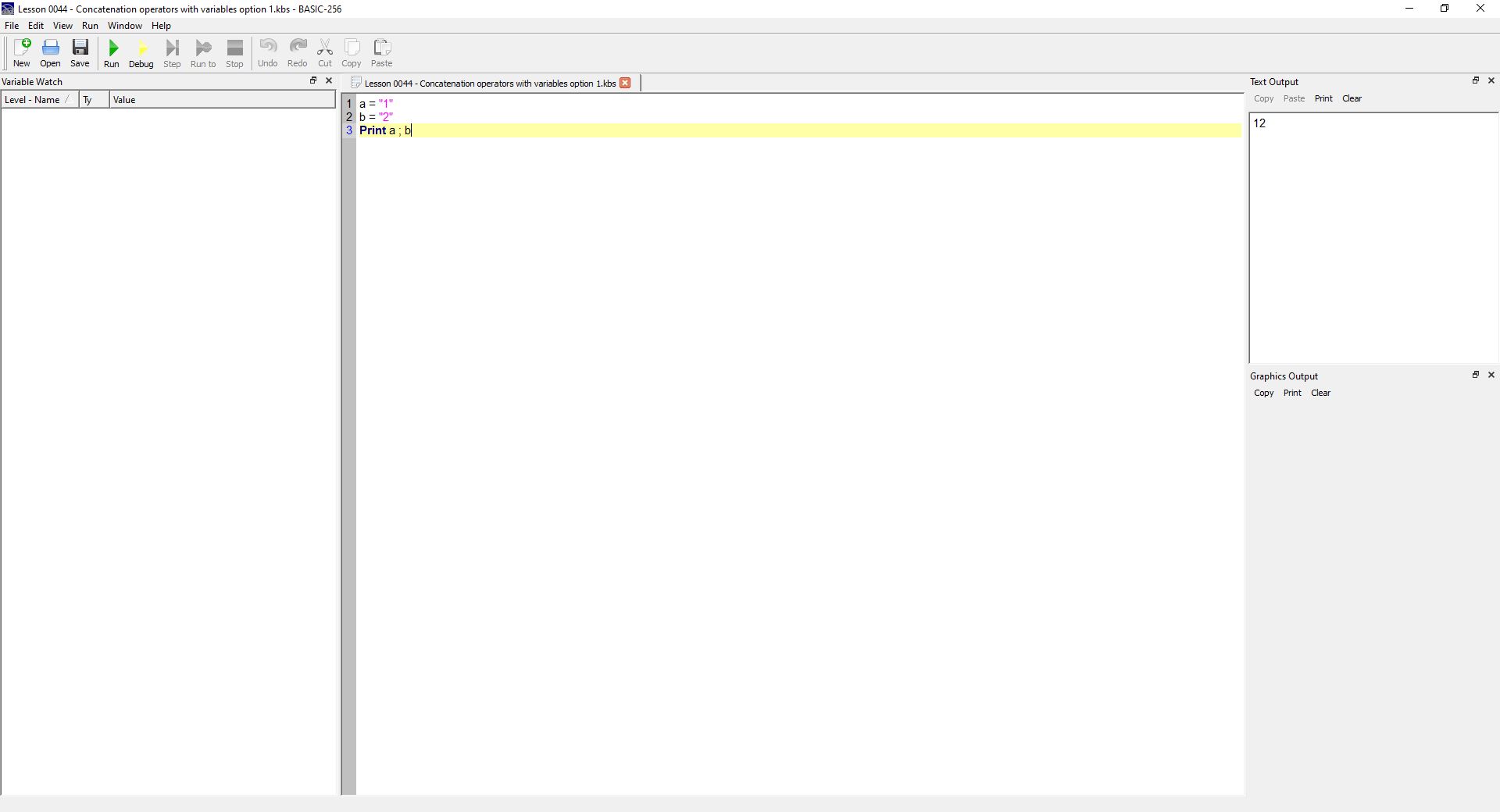| Guest | 11 hours ago | Viewing Attachment in Thread Basic-256 Concatenation Operators with values option 2 |