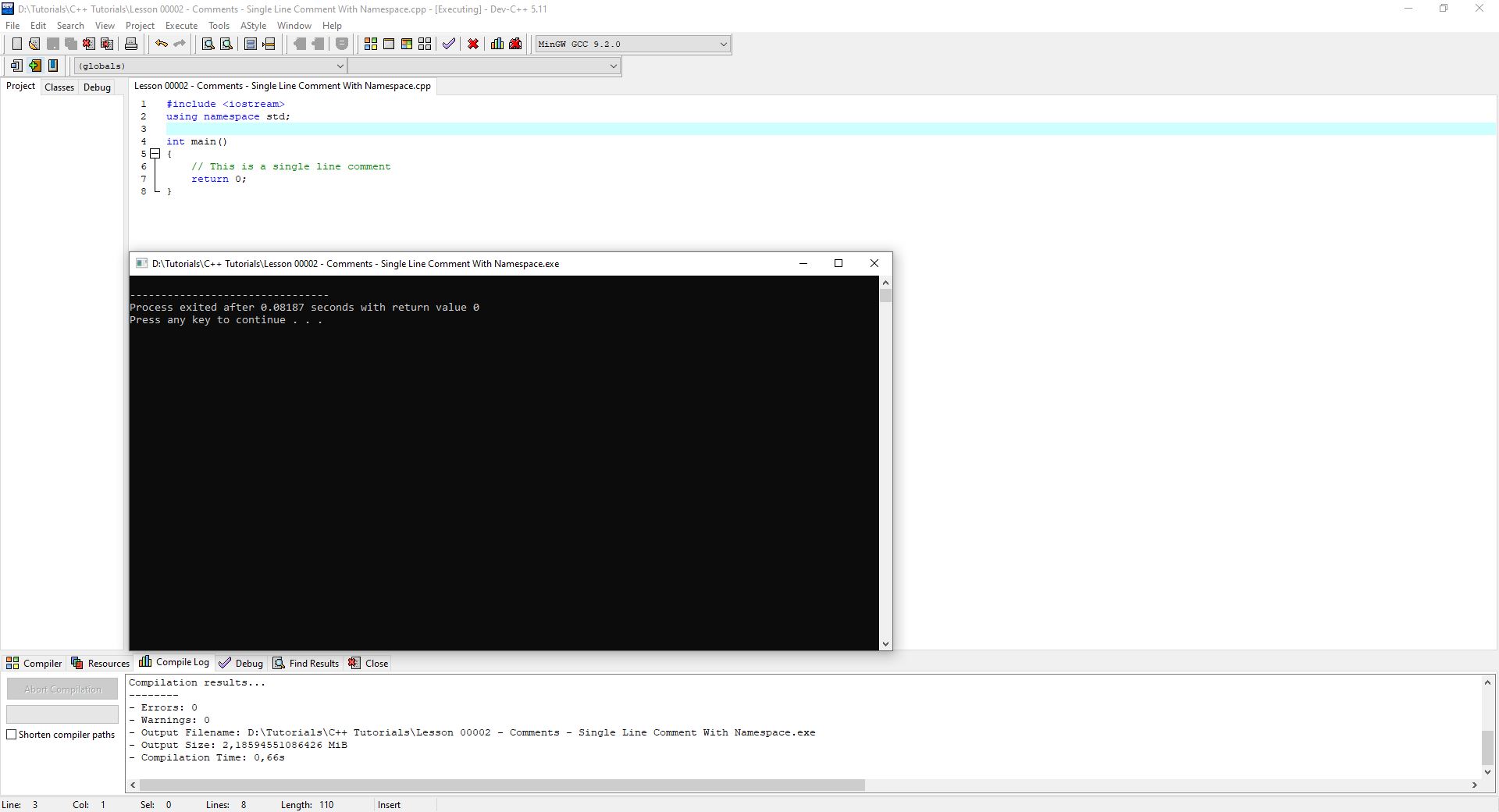 Viewing Attachment in Thread C++ 17 Single Line Comment With Namespace std |