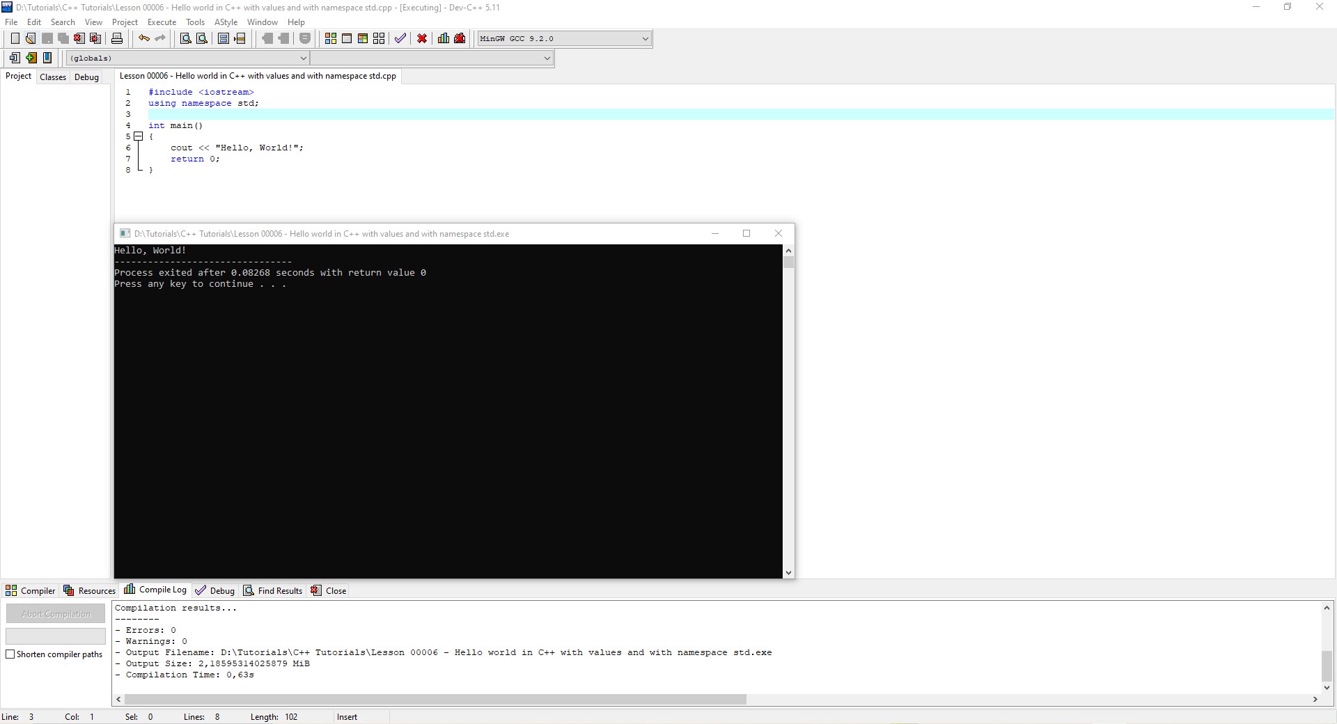 Viewing Attachment in Thread C++ 17 Hello world with values and with namespace std |