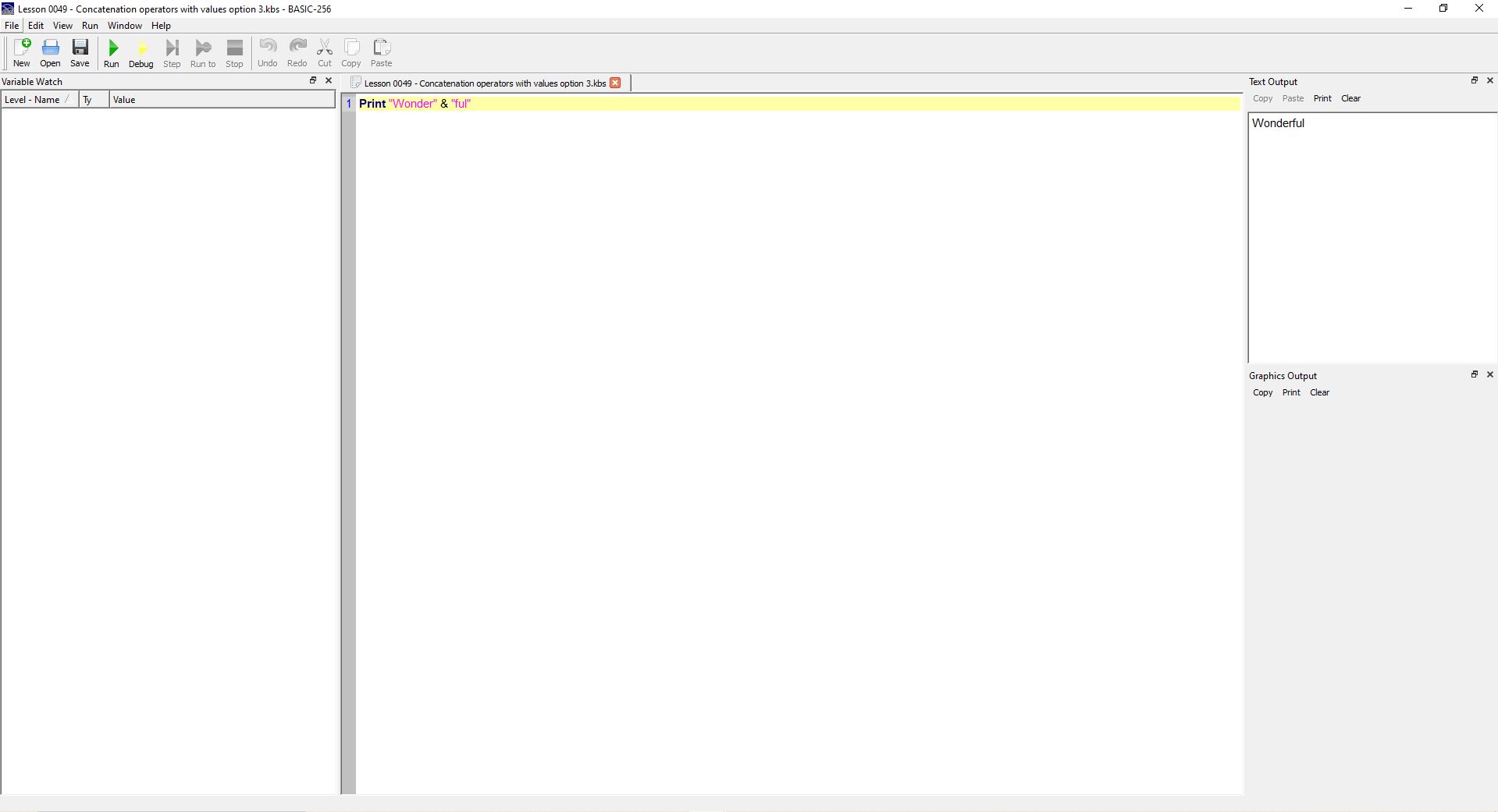 Viewing Attachment in Thread Basic-256 Concatenation Operators with values option 3 |