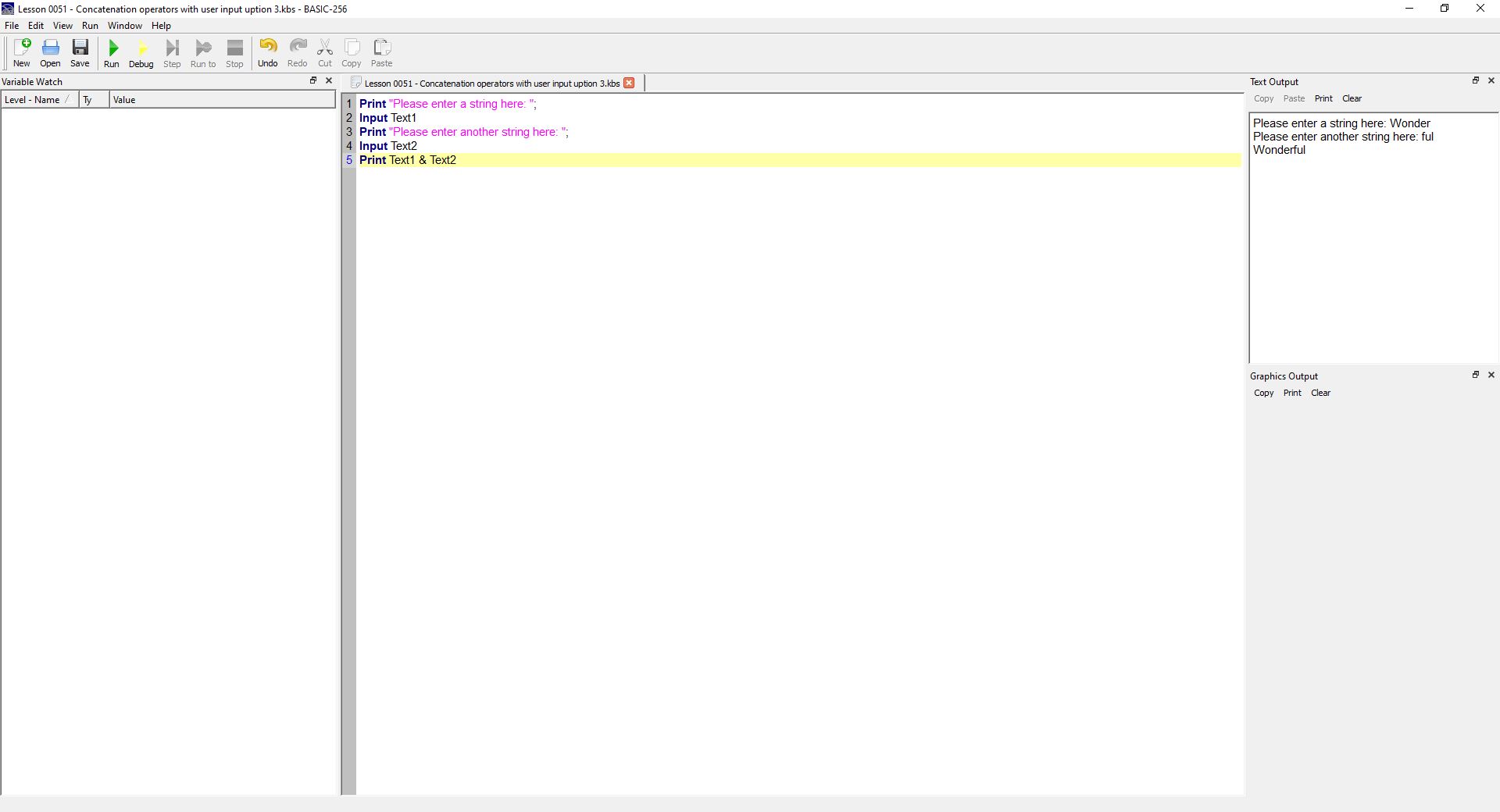 Viewing Attachment in Thread Basic-256 Concatenation Operators with user input option 3 |