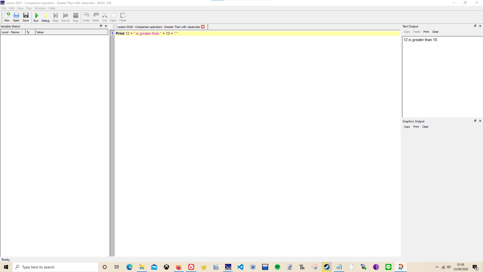 Basic-256 Greater Than with values