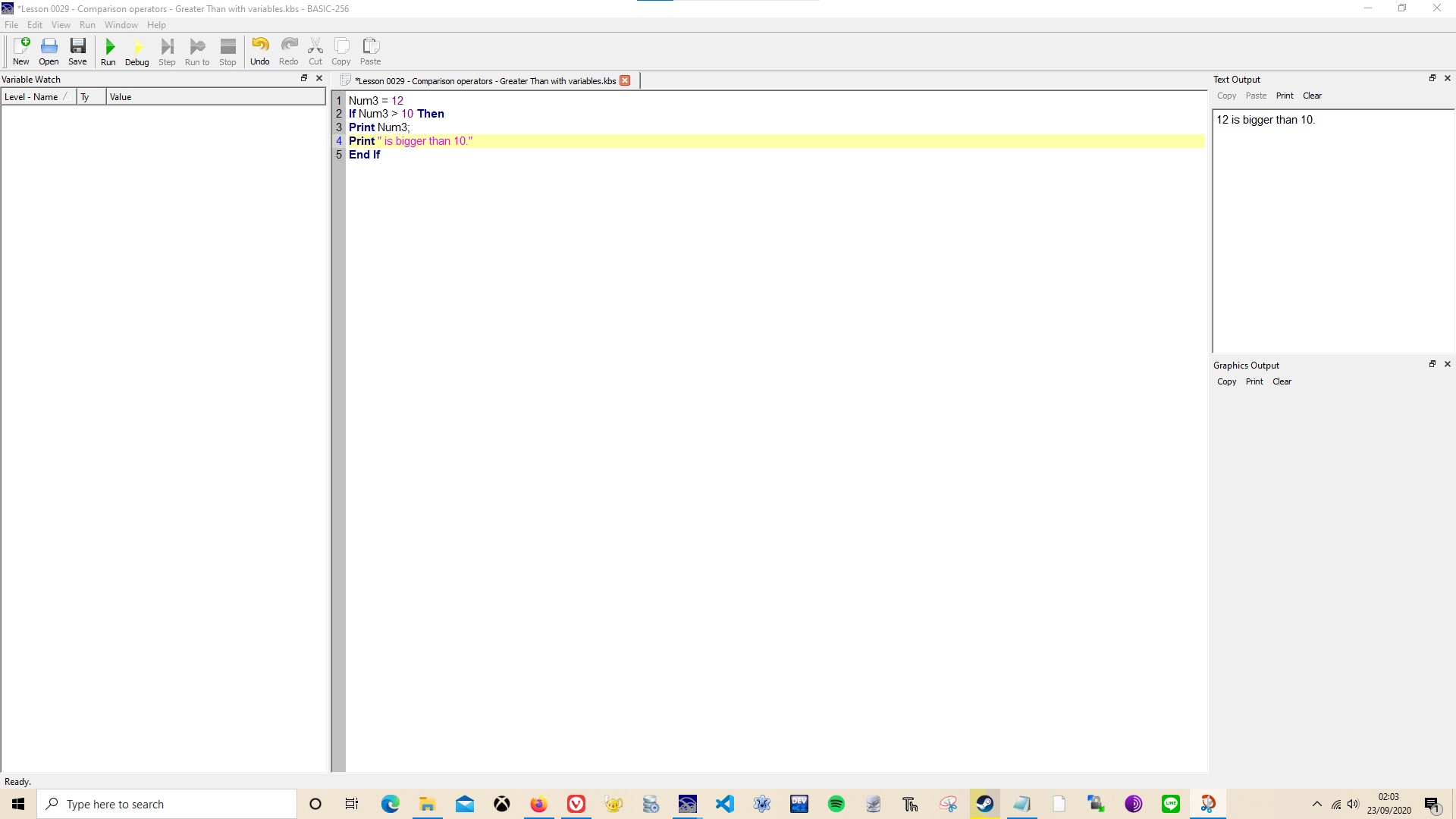 Basic-256 Greater Than with variables
